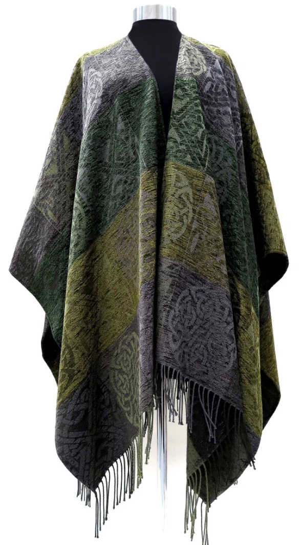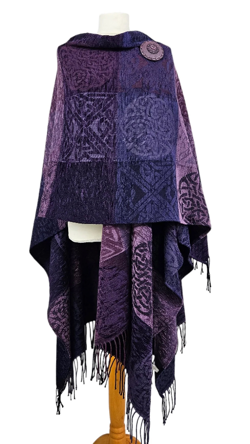 Cette version celtique est magnifique, portée comme châle, poncho, ou même manteau.